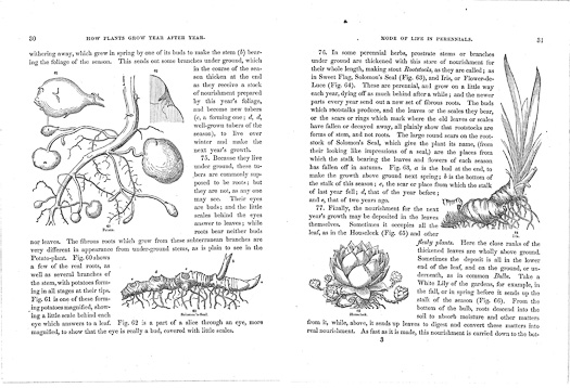 Indeed, from the 1840s until well into the twentieth century, Gray's textbooks shaped botanical education in the United States. One of these influential texts was How Plants Grow: A Simple Introduction to Structural Botany, written for young people. Perhaps because these readers could not be expected to have previous knowledge, Gray's explanations are helpfully thorough -- but don't imagine that the subject matter has been "dumbed-down"!